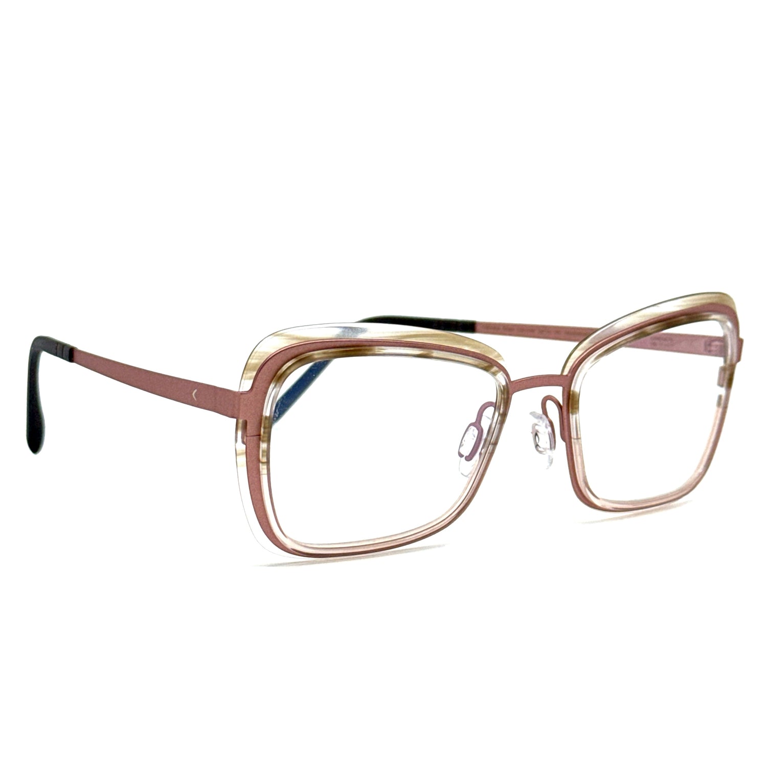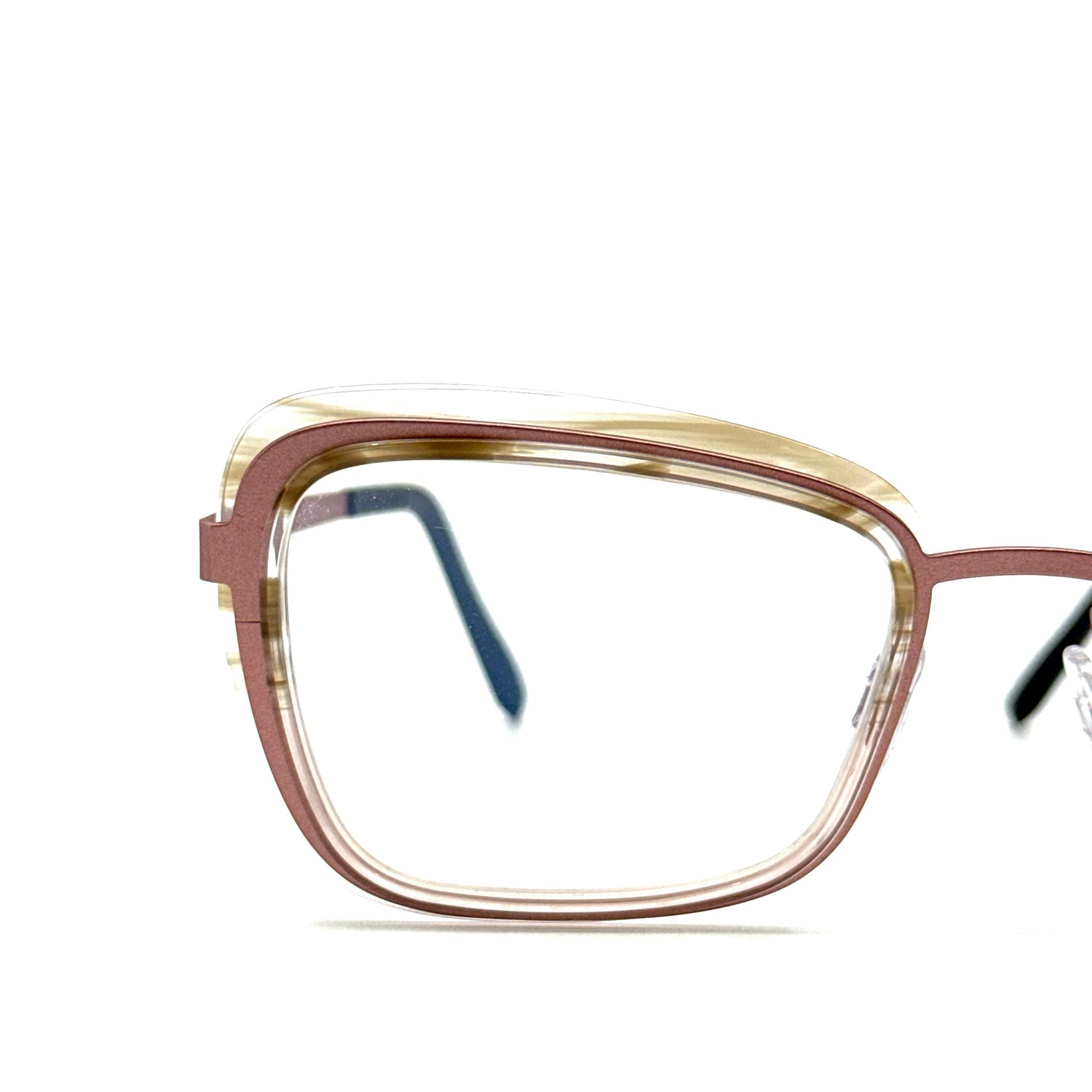 Optical frame obtained from a single beta titanium sheet combined with cellulose acetate rims, entirely made in Italy at the Blackfin Black Shelter Sustainable Factory. Hypoallergenic, ultralight and durable frame with ultraflexible temples for unrivalled comfort and fitting adaptability. Colors completely handmade.